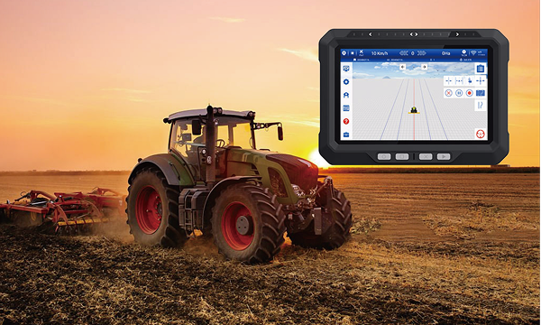 The user-friendly display allows operators to configure guidance lines, monitor operations, and manage field tasks easily.